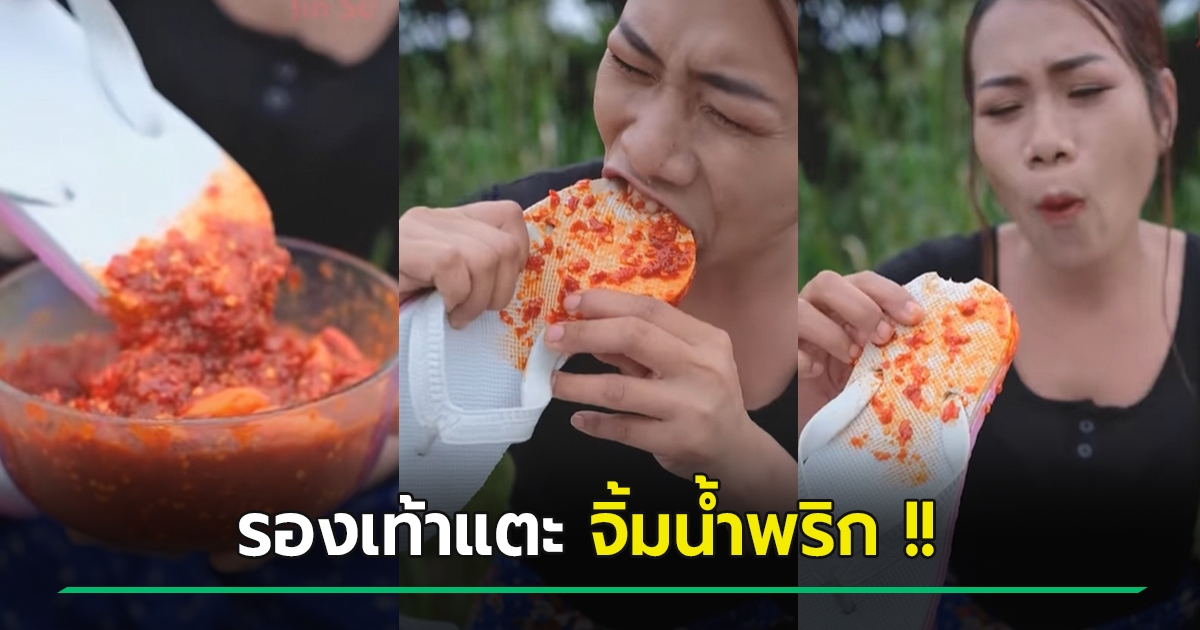 พิสดารให้สุด !! สาวเปิบรองเท้าแตะ จิ้มน้ำพริกกินซี้ดซ้าด เคี้ยวเข้าปาก ทำคนสะพรึงแรง