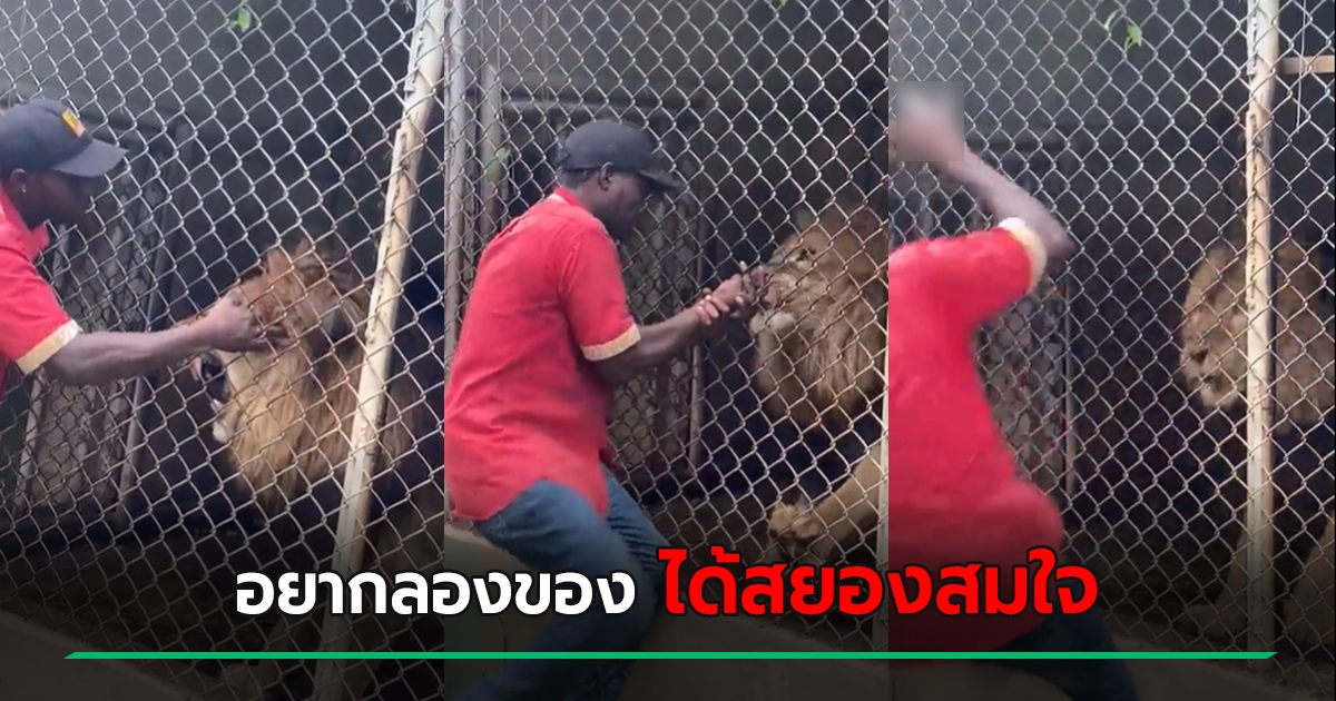 นาทีสยอง ชายลองดีแหย่สิงโต คิดว่าอยู่ในกรงทำอะไรไม่ได้ เจอกัดจมเขี้ยว นิ้วขาด !