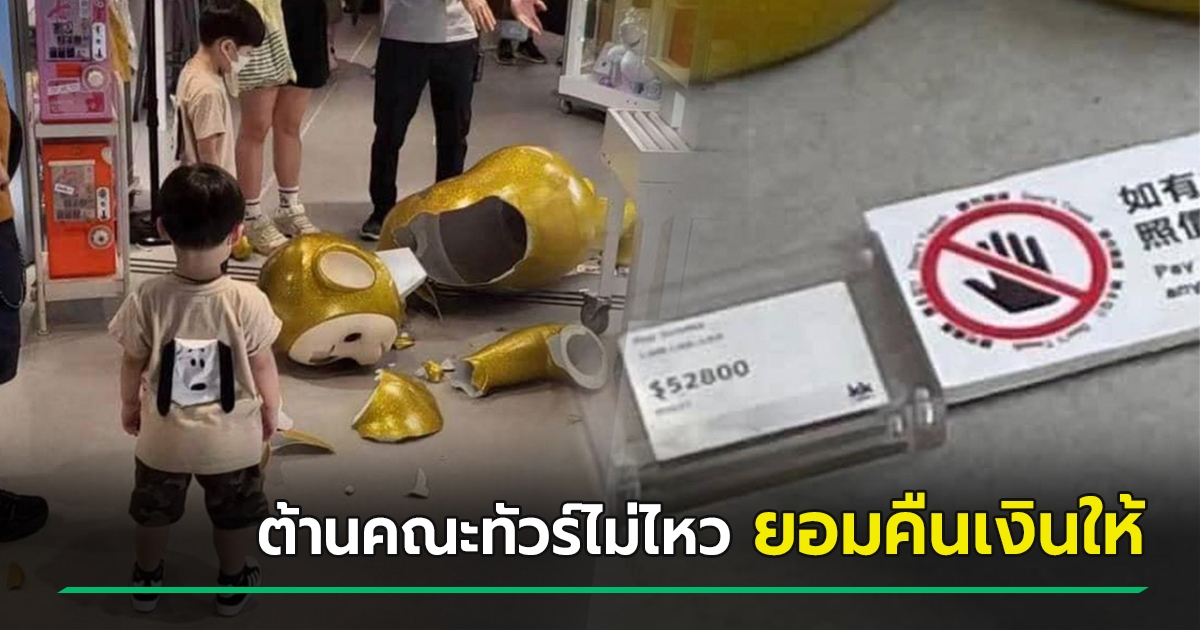 สรุปดราม่า เด็กพิงตุ๊กตา 2.3 แสน ล้มแตก แต่ทัวร์ลงที่ร้าน ยิ่งแจงยิ่งบ้ง จนยอมคืนเงิน