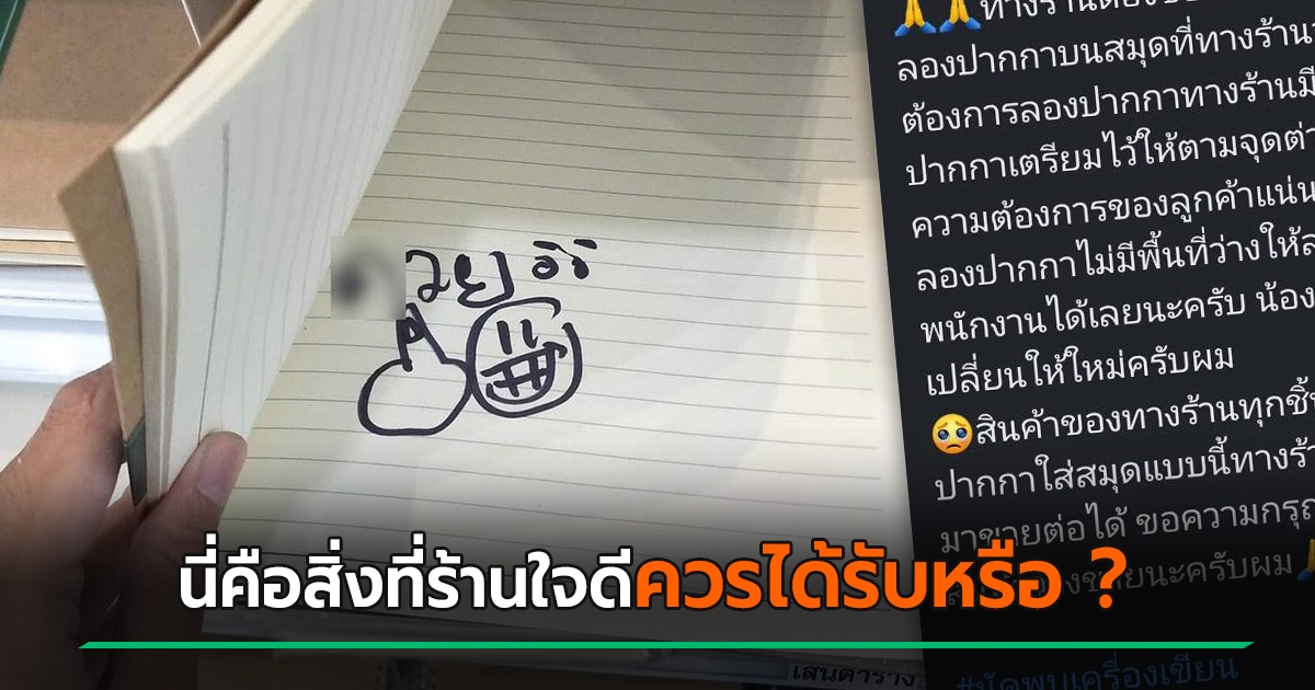สงสาร... ร้านเครื่องเขียน เจอมือปริศนาแอบวาดใส่กลางสมุด เขียนคำนี้ปวดตับเลย