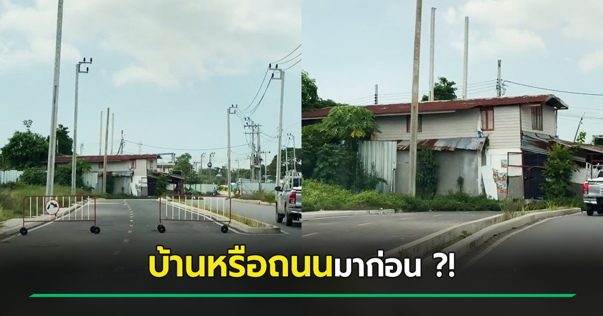 เป็นงง ! ขับรถมาปกติ จู่ ๆ เจอบ้านตั้งกลางถนน ทางหายไป 2 เลน นึกว่ามีแต่ที่จีน