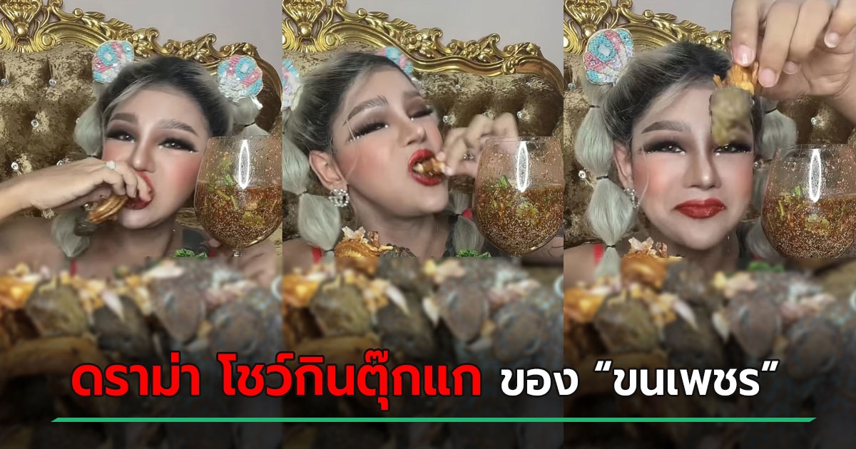 ขนเพชร โชว์กินตุ๊กแกทอด เสียงกรอบลั่นไลฟ์ หน้าอร่อยฟิน เจอจับผิดไม่ยอมกลืน-คายทิ้ง !?