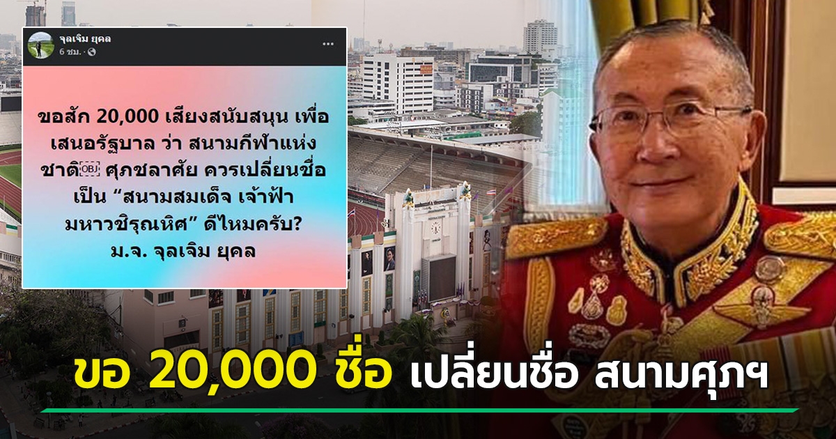 ม.จ.จุลเจิม ขอ 20,000 เสียง เปลี่ยนชื่อสนามศุภชลาศัย เป็นสนามสมเด็จเจ้าฟ้ามหาวชิรุณหิศ