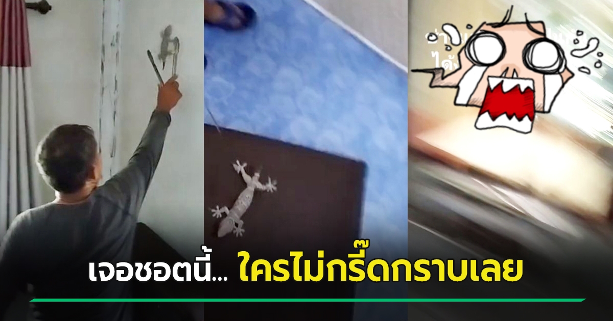 หัวใจจะวาย ! นาทีช่างแอร์จับตุ๊กแก แต่น้องดิ้นหล่นตุ้บมาอยู่ใกล้ ๆ...กรี๊ดจนเกือบขิต