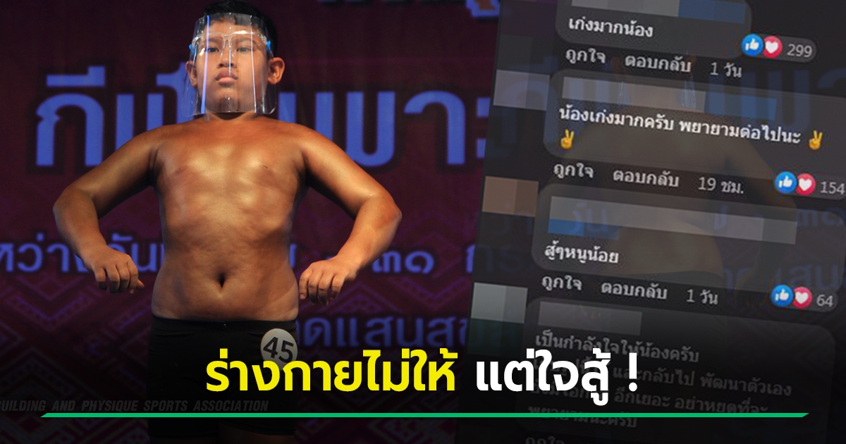 คอมเมนต์สะเทือน ! ไอ้หนูแข่งเพาะกาย หุ่นไม่ให้แต่ใจสู้มาก คนแห่ให้กำลังใจจนเป็นไวรัล