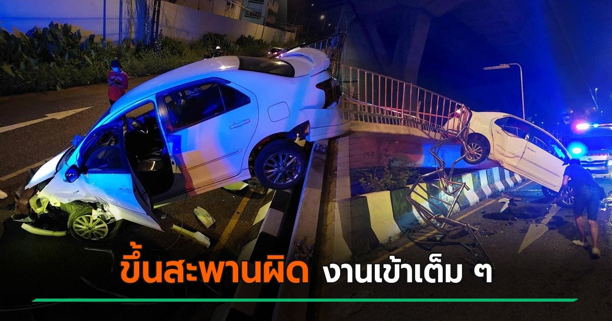 เก๋งซิ่งขึ้นสะพานกลับ จยย. ชนราวเหล็กพังยับ แห่คอมเมนต์มองสาเหตุพลาดแรง