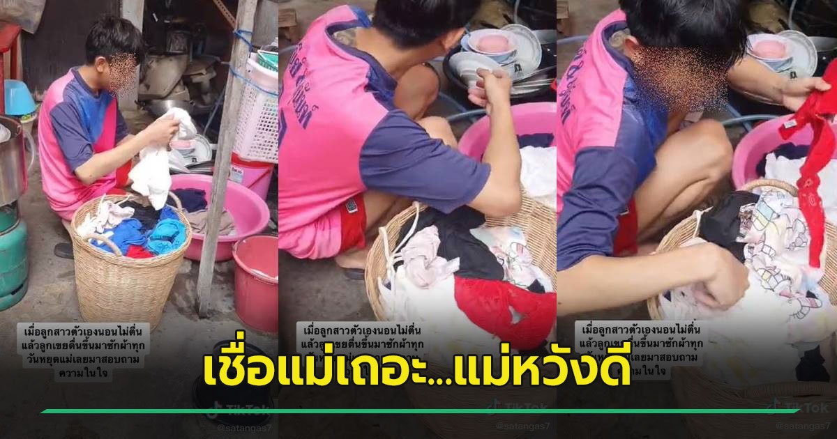 เอ็นดู...แม่ยายสงสารลูกเขย นั่งหลังขดหลังแข็งซัก กกน. ให้เมีย ลั่นหาเมียใหม่เถอะลูก