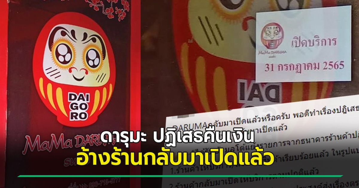 เอาแล้วไง... ดารุมะ ปฏิเสธคืนเงิน อ้างส่งมอบคูปอง ร้านกลับมาเปิดใหม่ แม้มีแค่ 2 สาขา