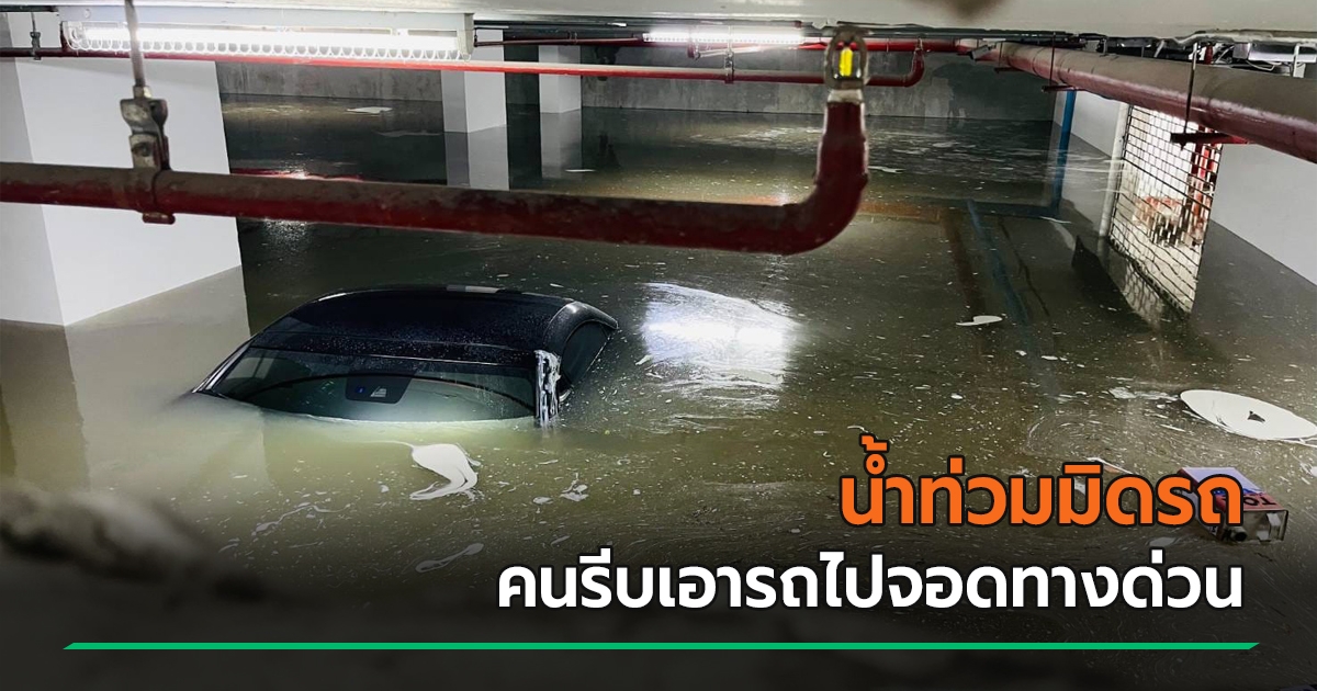 น้ำท่วมหนัก มิดชั้นใต้ดินคอนโดหรู รถจมบาดาล ด้านคนผวา รีบเอารถไปจอดบนทางด่วน