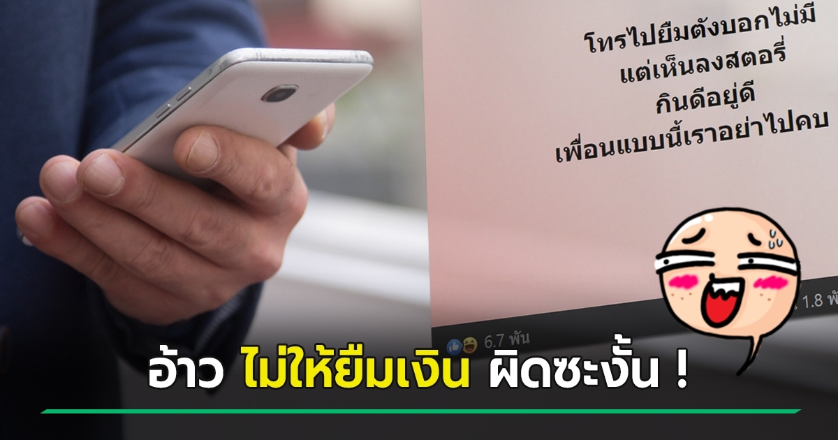 ไวรัลหนุ่มตัดพ้อ เพื่อนไม่ให้ยืมเงิน ส่องสตอรี่เห็นอยู่ดีกินดี อ้าว...คนไม่ให้ยืมผิดด้วยเหรอ !