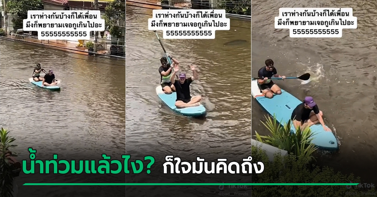 ไวรัลฮา มิตรภาพยิ่งใหญ่ น้ำท่วมสูงยังไงก็ต้องมาหา 2 หนุ่มพายจ้ำกันมา คนมันคิดถึง