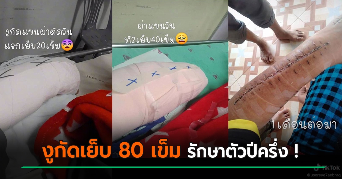 สาวแชร์ประสบการณ์ เกือบต้องตัดแขนเพราะงูเขียวหางไหม้กัด เย็บ 80 เข็ม !
