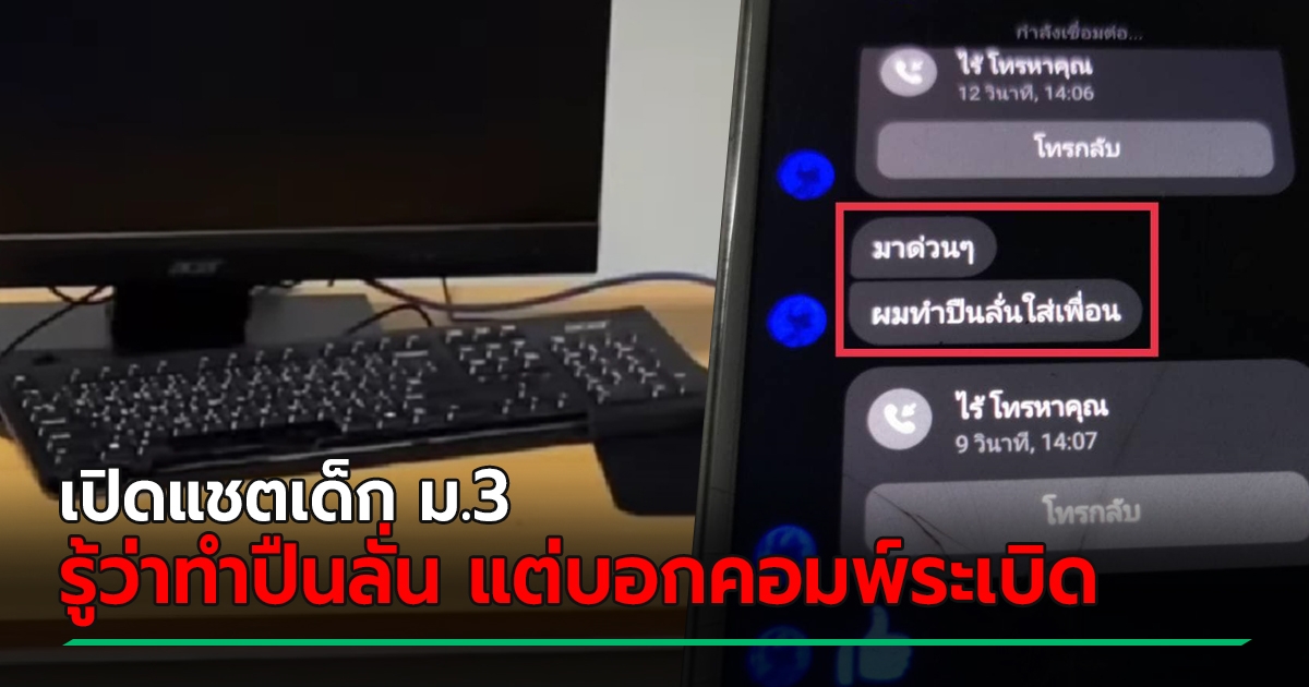 เปิดแชตเด็ก ม.3 สารภาพทำปืนลั่นใส่ น้องโชค บอกรุ่นพี่รับปืนไป - ครูรับ ทำไมพูดว่าคอมพ์ระเบิด