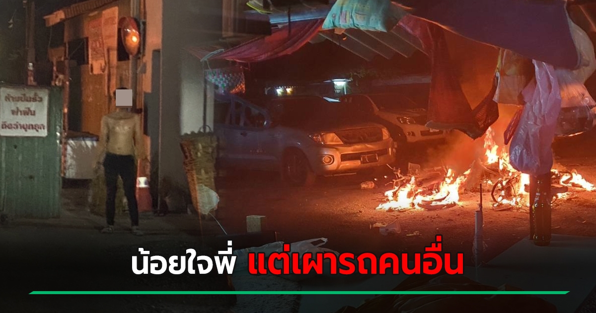 ป่วนกลางดึก ! ชายเมาคลั่ง ทุบ-เผารถเป็นสิบคัน รับน้อยใจพี่ชาย แต่มาลงกับคนอื่น