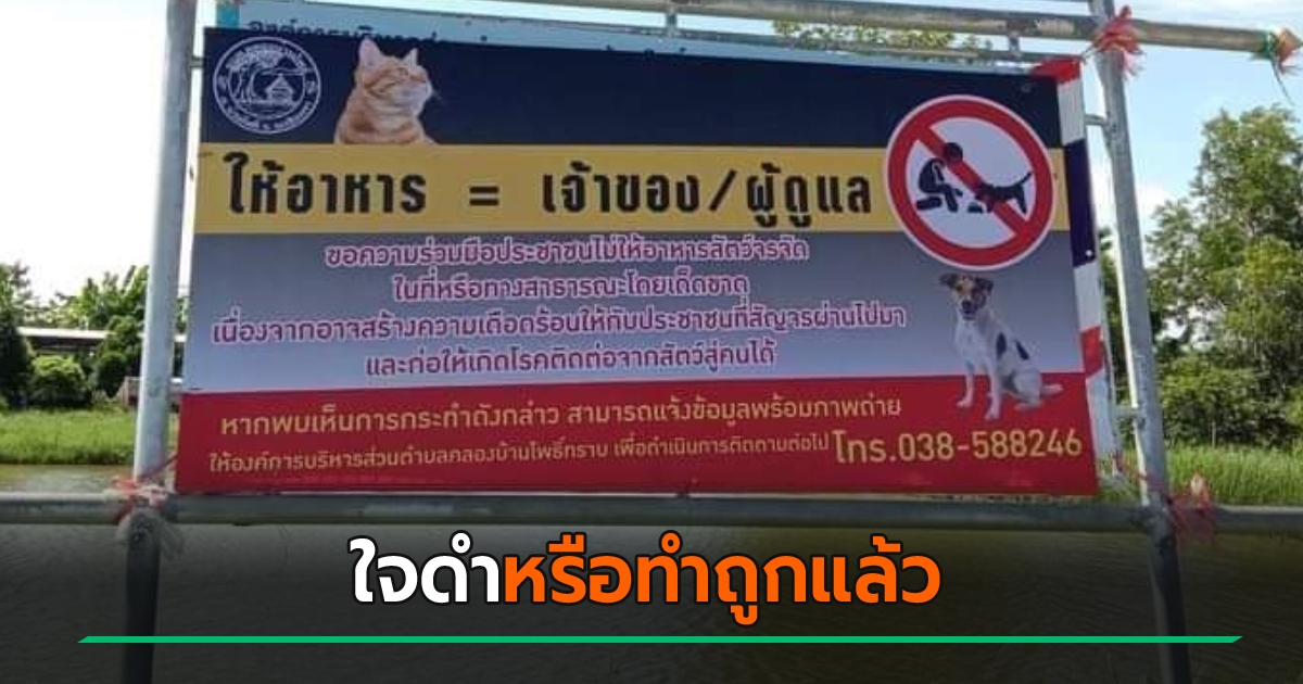 ถกสนั่น !! อบต. ขึ้นป้ายงดให้อาหารหมา-แมวจร ชี้ ให้อาหารเท่ากับเป็นเจ้าของ