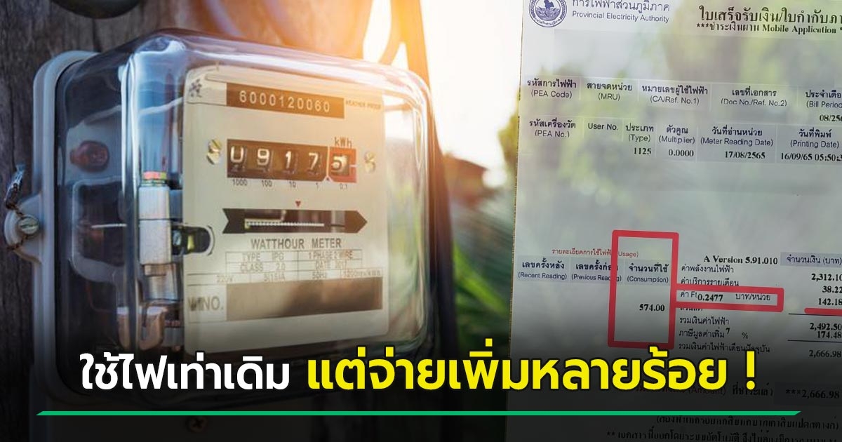 เทียบให้ดูชัด ๆ หลังค่า Ft ขึ้น - 2 เดือนใช้ไฟเท่าเดิม แต่ค่าไฟพุ่งปรี๊ด เหงื่อตกเลย !