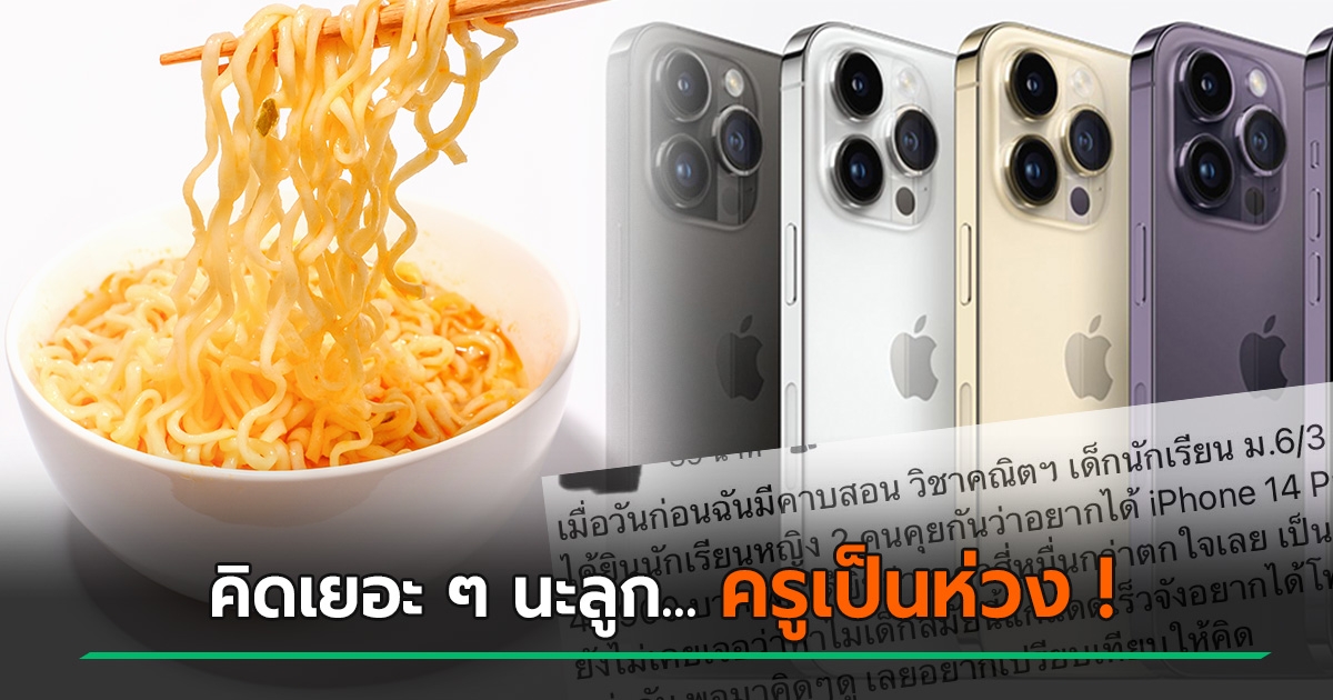 ทัวร์ลง ! ครูแขวะ นร. แก่แดดอยากได้ iPhone 14 ชี้ซื้อกะเพราได้พันจาน - มาม่า 6,414 ซอง