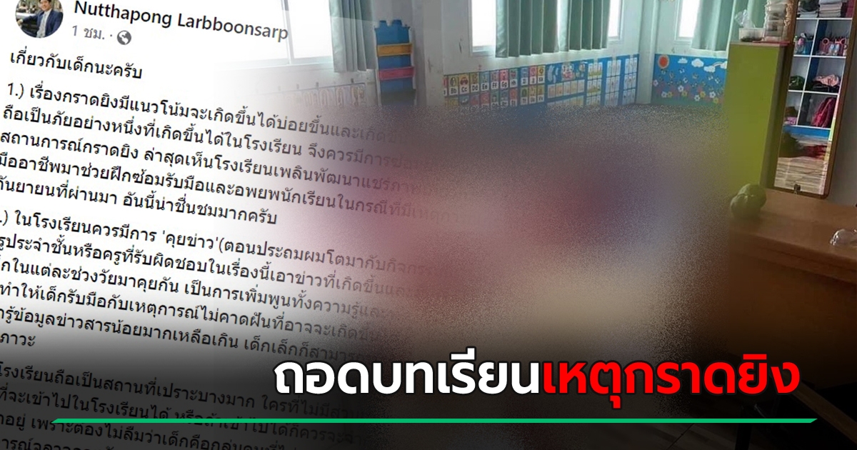 ติวเตอร์ดัง จี้ ศธ. เลิกให้ครูวัดผลบ้าบอ เน้นเรื่องเด็กเป็นสำคัญ เหตุกราดยิงจะไม่ใช่ครั้งสุดท้าย