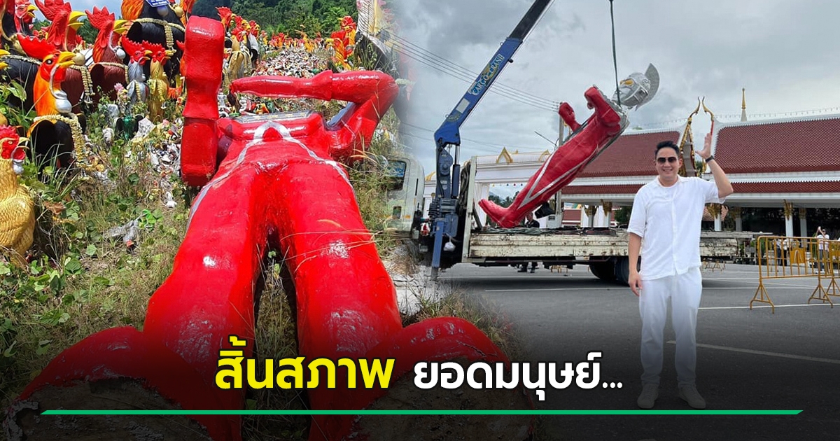 สิ้นสภาพ... รูปปั้นอุลตร้าแมน ไฮโซปอ ล้มคอหักหลังแก้บนไอ้ไข่ - มีปัญหาตั้งแต่นำไปลง