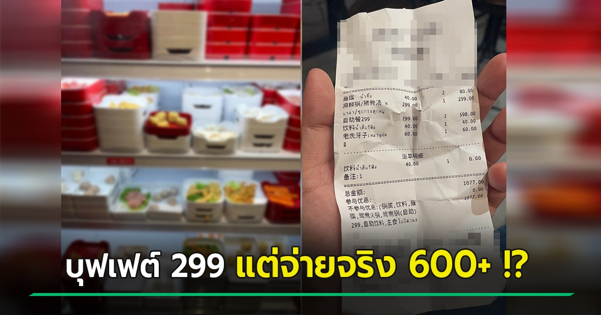 ดราม่าบุฟเฟต์ 299 จ่ายจริงหัวละ 600+ ช็อกคิดค่าหม้อแยก-คนชี้มีป้ายบอก เจอสวนกลับ