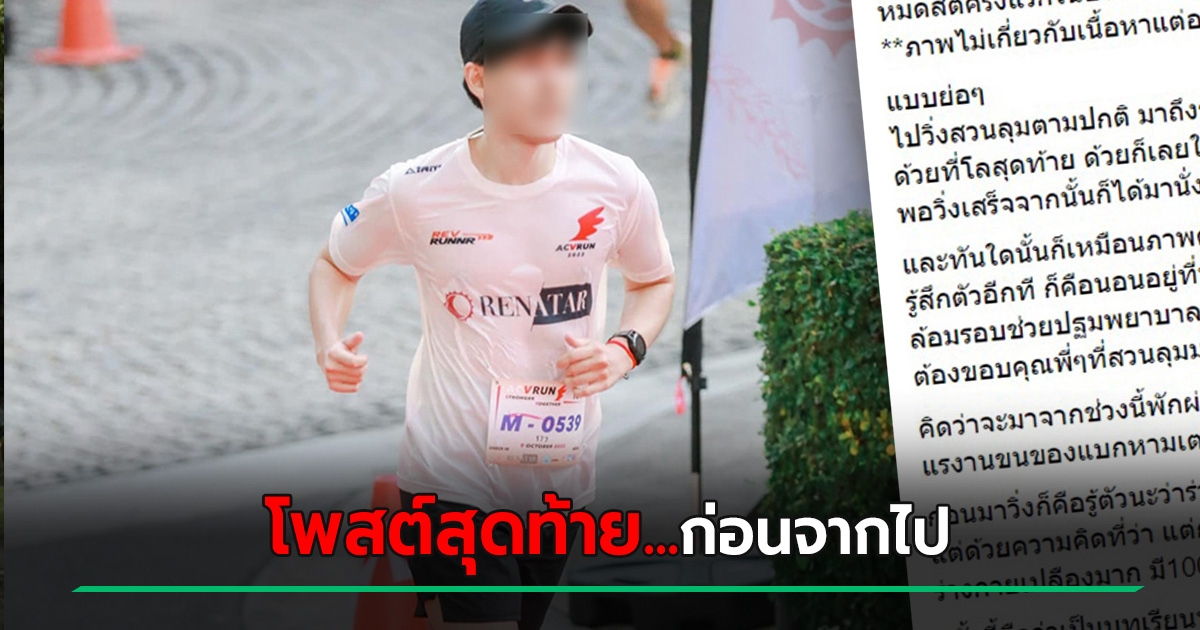 นักวิ่งหนุ่มโพสต์บทเรียน หมดสติตอนซ้อมวิ่ง ผ่านไป 3 วัน วูบอีกครั้ง... ก่อนเสียชีวิต