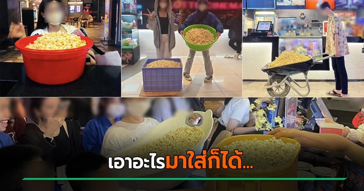 ไวรัลโรงหนังจัดโปรฯ แถมฟรีป๊อปคอร์นไม่อั้น เอาอะไรมาใส่ก็ได้ แค่ถัง.. มันน้อยไป