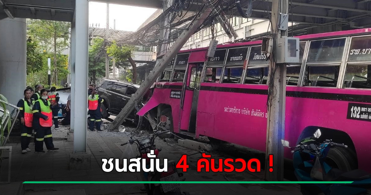 ปาเจโร่คาดหลับใน ชน 4 คันรวด ฟาดรถเมล์ไปอีกคัน สาเหตุรถติดสนั่นที่อ่อนนุช