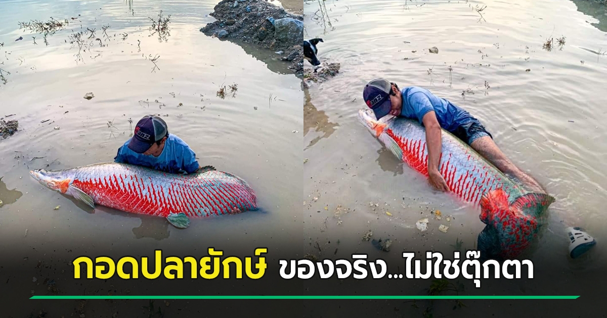 ชาวบ้านจับปลายักษ์ตัวใหญ่กว่าคน ดีใจลงไปอุ้ม นอนกอดกลางน้ำ ฮือฮา ปลาอะไร !?