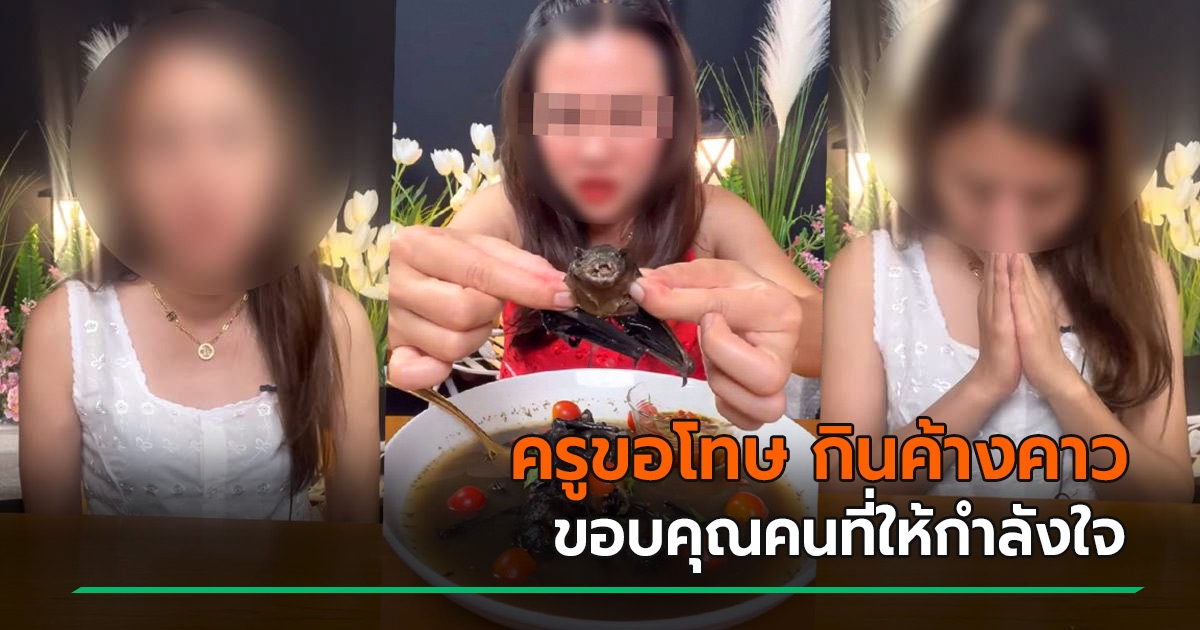 ครูสาวโชว์กินค้างคาว ไลฟ์ขอโทษเสียงสั่น ทำไปเพราะขาดสติ ซึ้ง FC ตามให้กำลังใจ
