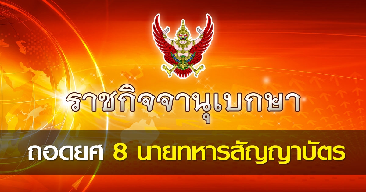 โปรดเกล้าฯ ถอดยศ-เรียกคืนเครื่องราชฯ 8 นายทหาร ผิดวินัย-ประพฤติชั่วร้ายแรง