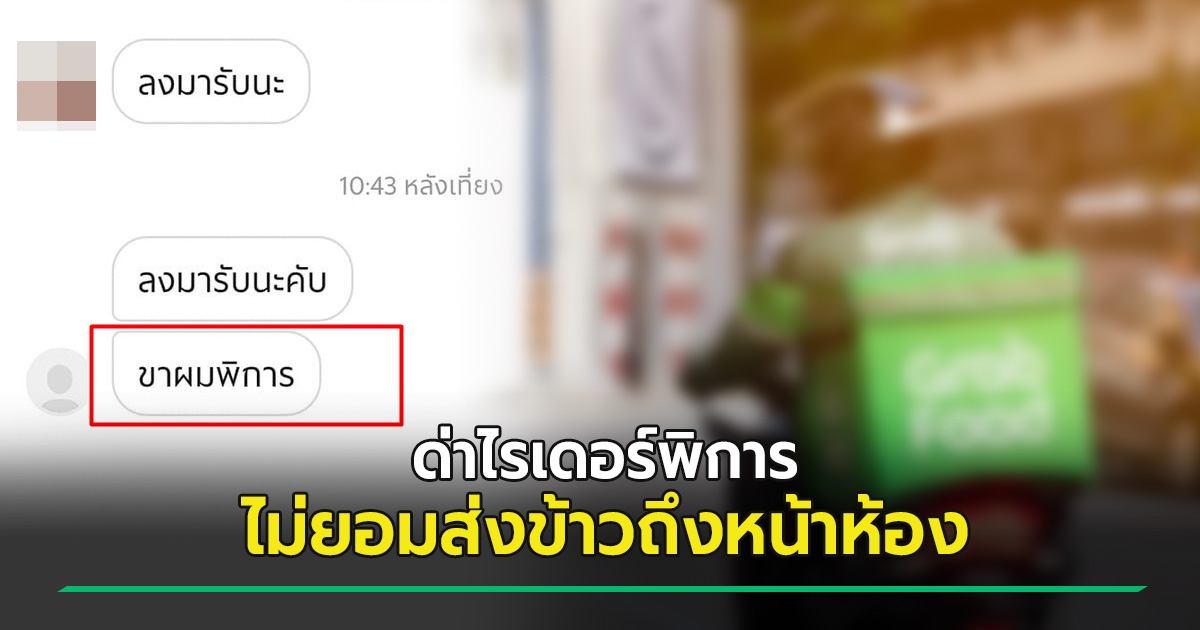 หนุ่มด่าไรเดอร์พิการ ทำงานไม่ไหวก็อย่าทำ หลังปฏิเสธไม่ขึ้นไปส่งข้าวถึงห้อง รู้ตอนจบโกรธหน้าสั่น