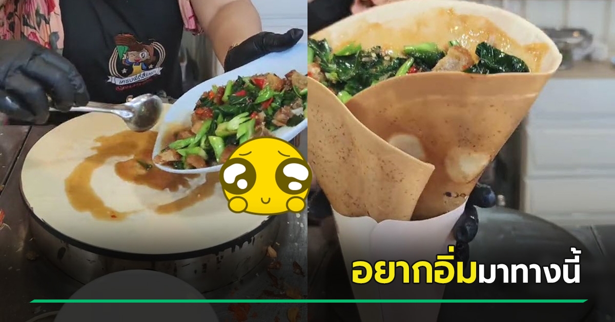ร้านเครปโชว์ทำตามสั่ง มาเป็นไส้เน้น ๆ ทั้ง คะน้าหมูกรอบ - กะเพราไข่ดาว ก็มี !