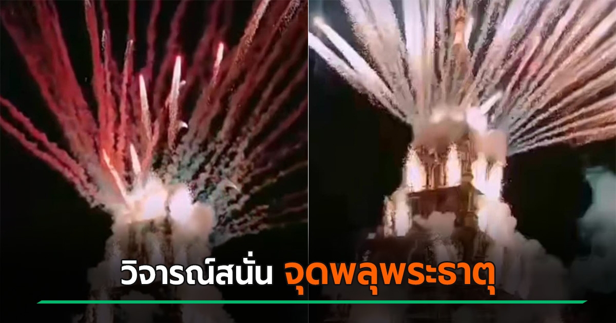 ดราม่า ! วัดดังจุดพลุไฟบนองค์พระธาตุเจดีย์เหลี่ยม หวั่นโบราณสถานเสียหาย