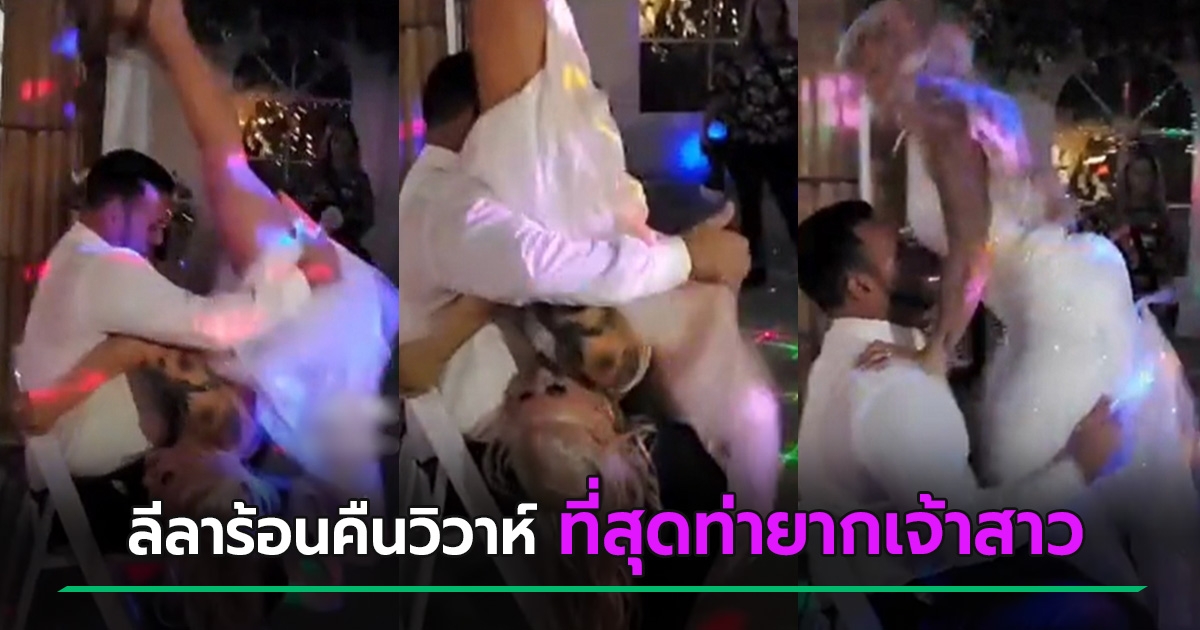 ที่สุดคืนงานแต่ง ลีลาเจ้าสาวแดนซ์ท่ายาก ตีลังกาฉีกขาเต้นบนตักเจ้าบ่าว แขกยืนร้องลั่น