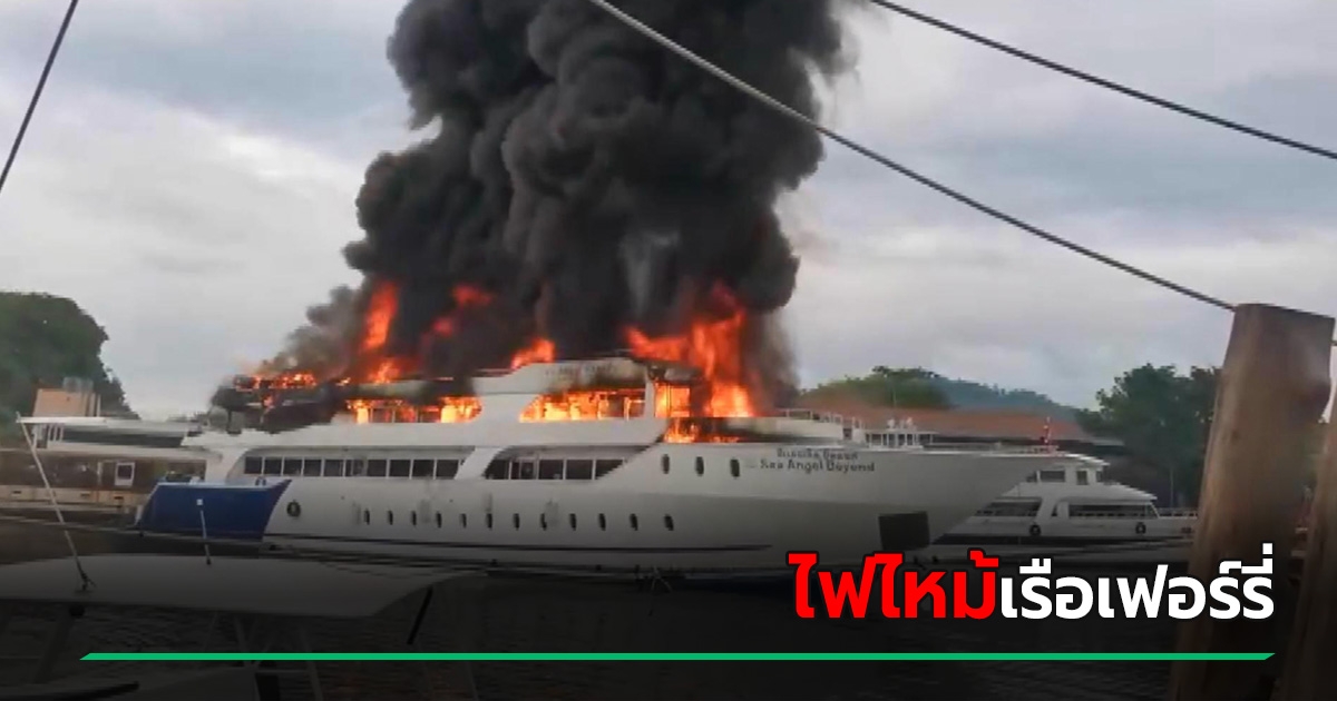 นาทีระทึก ! ไฟไหม้เรือเฟอร์รี่ข้ามฟาก ภูเก็ต-เกาะพีพี เร่งสกัดเพลิง เสียหายกว่า 40 ล้าน