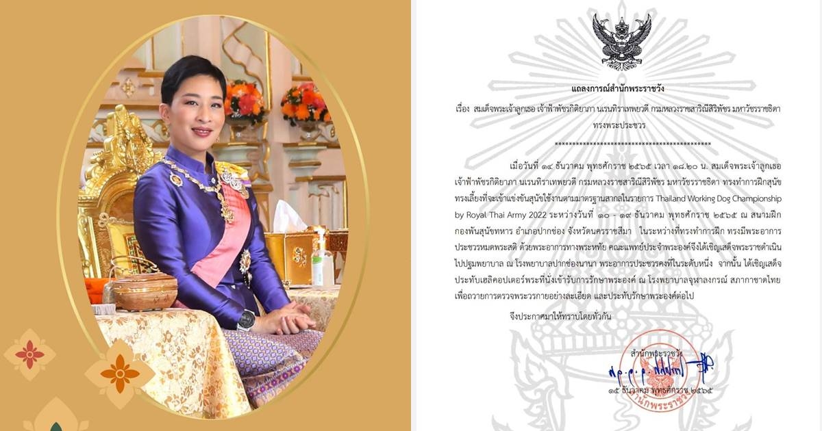 สำนักพระราชวัง แถลง เจ้าฟ้าพัชรกิติยาภาฯ ประชวรหมดสติ ด้วยอาการทางพระหฤทัย