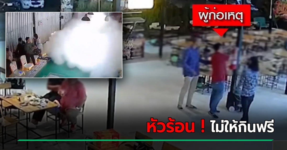 ลูกค้าหัวร้อน ขับเก๋งหรูกร่างร้านตกกุ้ง ฉุนไม่ให้กินฟรี คว้าถังดับเพลิงฉีดพ่นกลางร้าน
