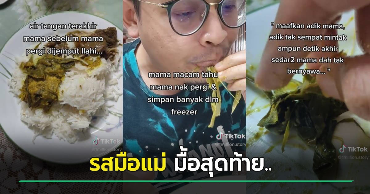 จุกหัวใจ.. ลูกชายกินข้าวทั้งน้ำตา รสมือแม่มื้อสุดท้าย เก็บเกลี้ยงทุกเม็ด จากนี้ไม่มีแล้ว
