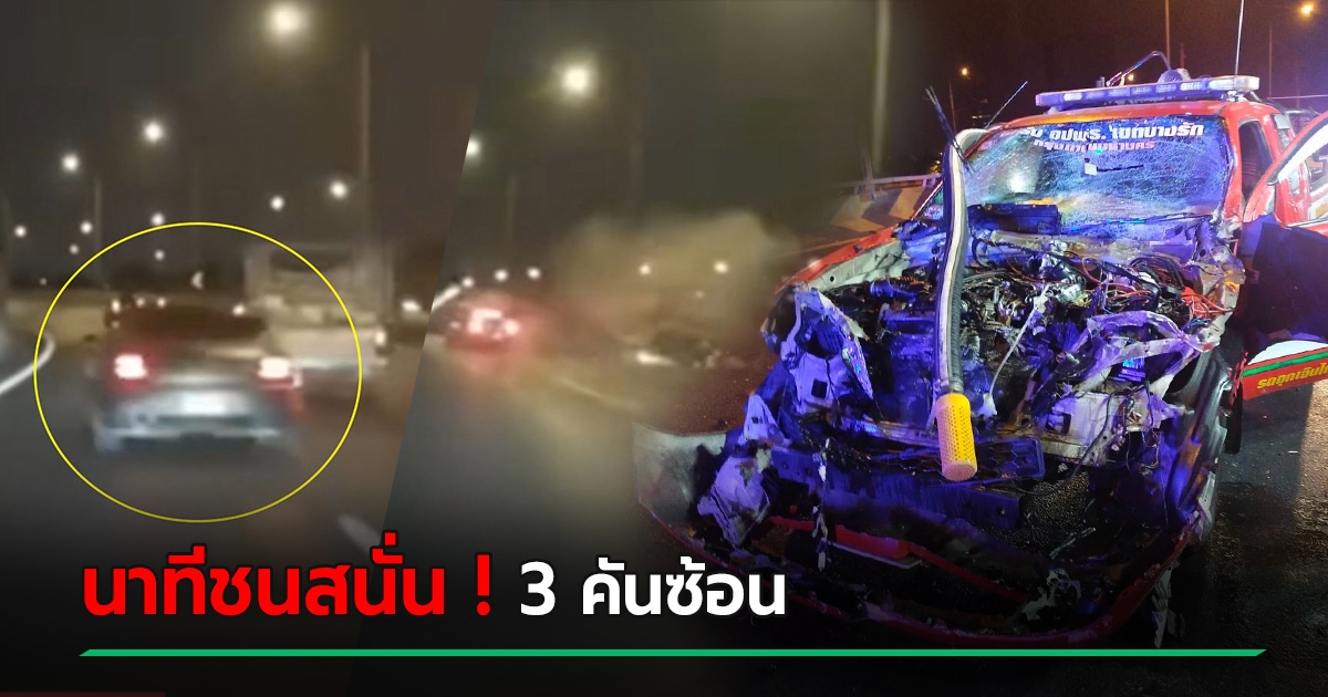 เปิดนาที รถหรูซิ่งแซงซ้ายบนทางด่วน ชนสนั่นปาเจโร่ ก่อนดับเพลิงชนซ้ำ พังยับ 3 คัน