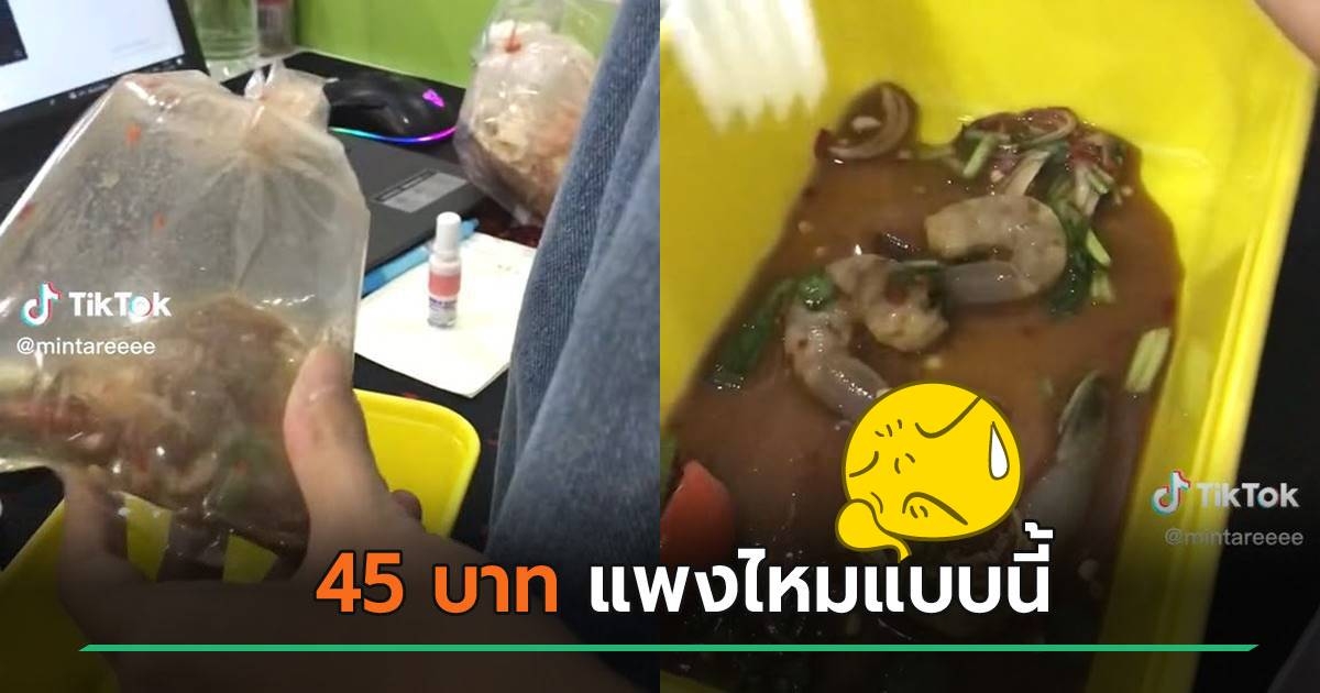 ลูกค้ารีวิว ยำกุ้งสด 45 บาท ได้มาแค่นี้ ทำโซเชียลขยี้ตา กลัวไม่เชื่อกดสั่งให้ดูอีกรอบ !