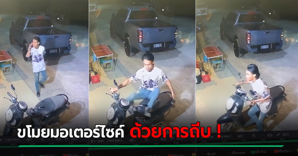 เฮ้ย...ทำได้ไง โจรขโมยมอเตอร์ไซค์ ด้วยการใช้ 2 ขาถีบ ล็อกคอก็ไม่รอด เจ้าของซวยซ้อน