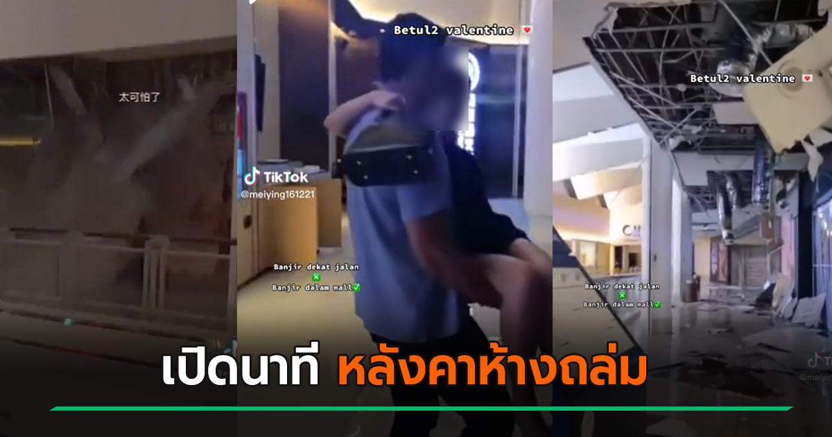 นาทีหลังคาห้างถล่ม หลังเจอฝนตกหนัก น้ำไหลท่วมทั้งชั้น แต่คู่เดตยังไม่วายโชว์หวาน