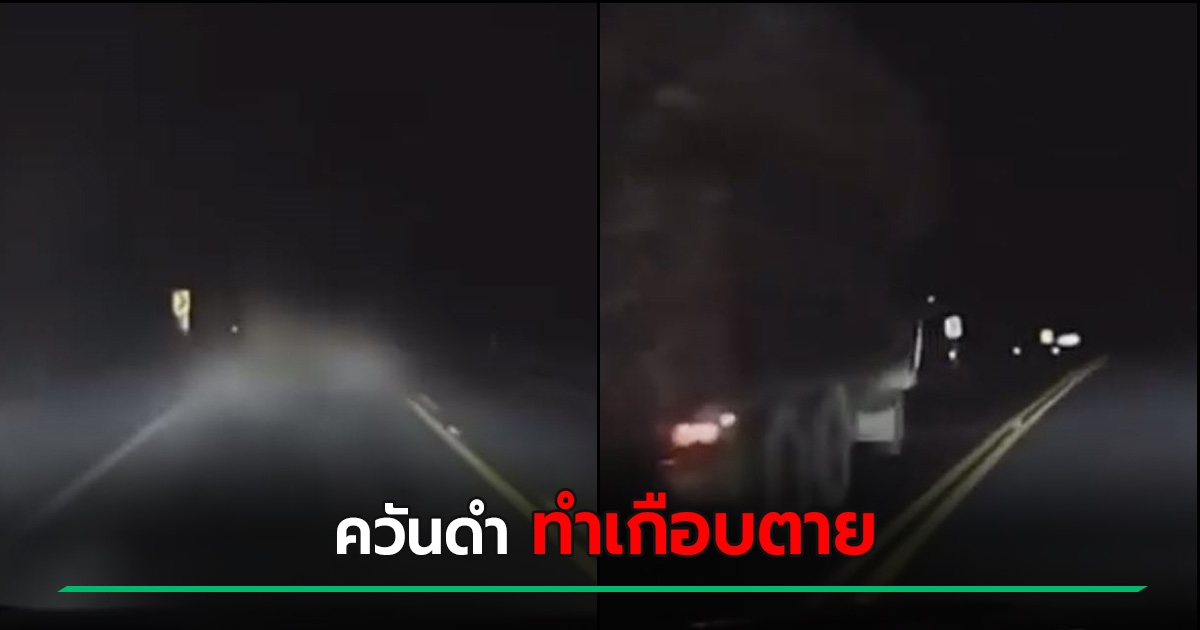 นาทีขับรถกลางคืนถนนสุดมืด ซ้ำควันปริศนาลอยบัง จู่ ๆ เฉียดตายหวิดเสยท้ายสิบล้อ