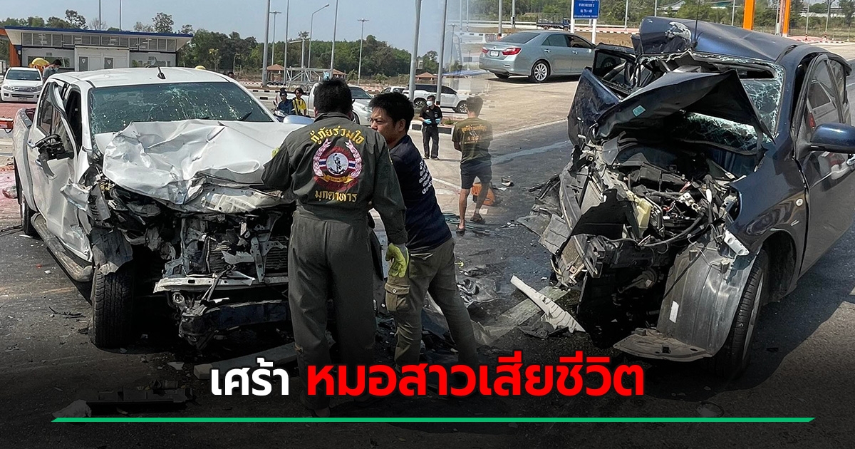 ดับสลด.. หมอสาวเพิ่งออกเวร ขับรถกลับบ้าน พุ่งข้ามเลนชนกระบะ สภาพรถพังยับ