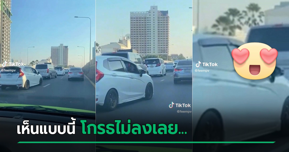 สาวชูนิ้วให้รถคันหลัง ก่อนจะปาดเข้าเลน พอหรี่ตามอง จากที่หัวร้อน เปลี่ยนโหมดทันที !