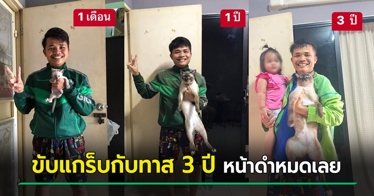หนุ่มรีวิวพาแมวขับแกร็บ 3 ปี หน้าดำขึ้นทุกปี ทาสเอ็นดู..ร้องขอครีมกันแดดให้น้อง