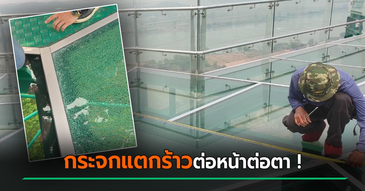 ช็อก ! นทท. เดินสกายวอล์กพระธาตุผาเงา เจอกระจกแตกร้าวต่อหน้าต่อตา