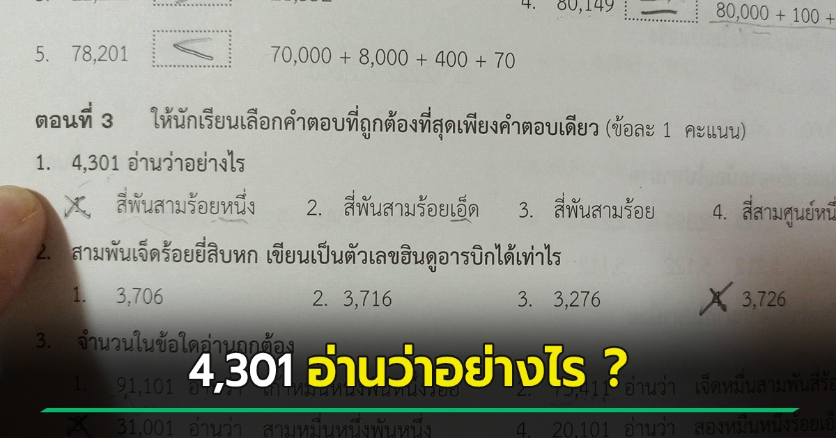 แชร์โจทย์เลขโลกแตก ถาม 4,301 อ่านว่าอย่างไร เถียงสนั่น เอ็ด หรือ หนึ่ง !