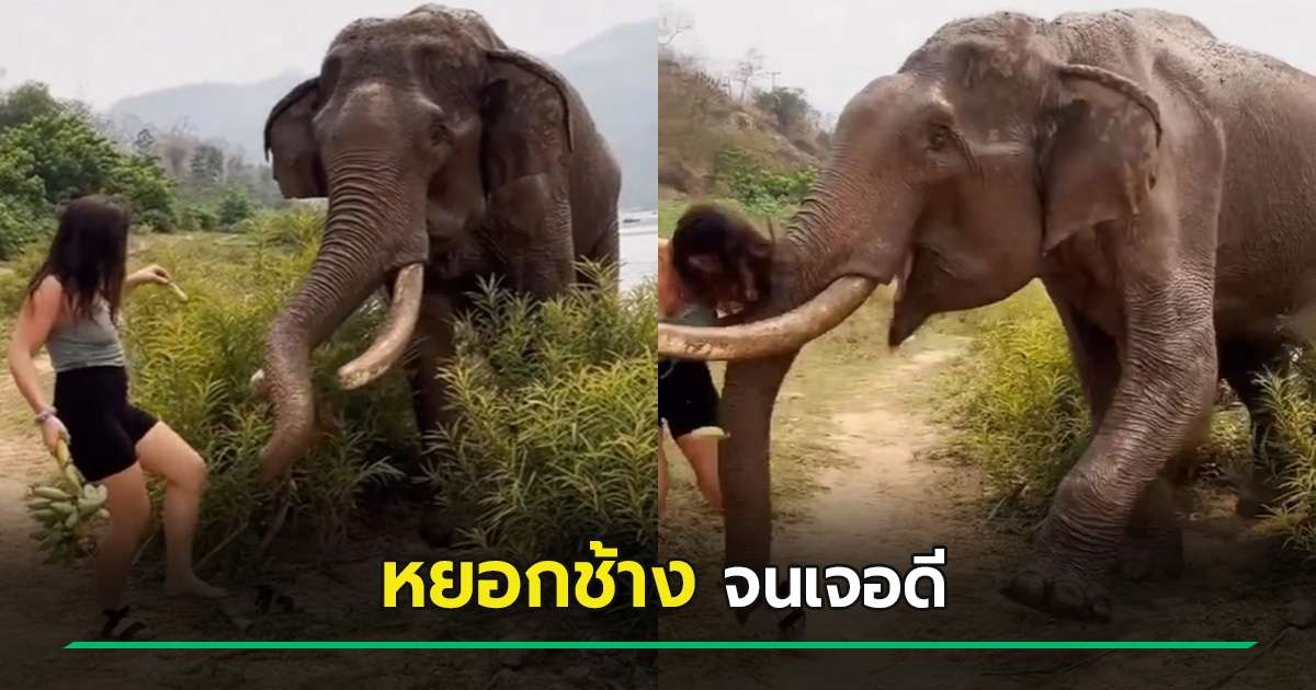 สาวหาทำ ยื่นกล้วยให้ช้าง-ชักมือกลับ ล่อให้เดินตาม สุดท้ายเจอดี แถมคนถล่มซ้ำ
