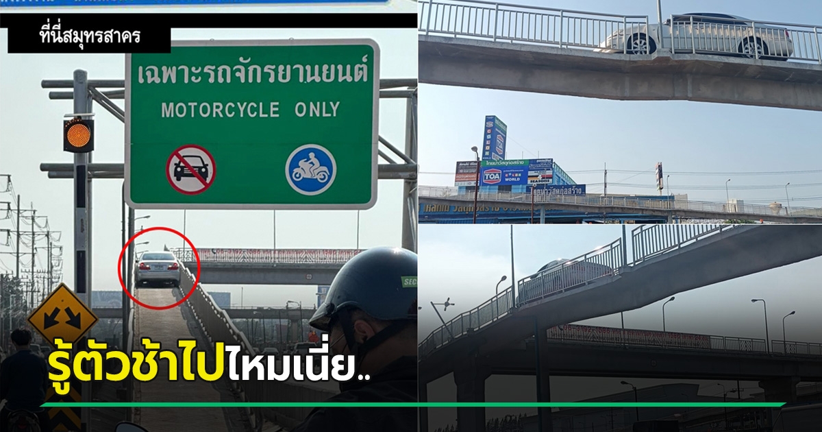 เหวอทั้งถนน เก๋งขับขึ้นสะพานกลับ จยย. ไปสุดจนเลี้ยวไม่ได้ สกิลถอยรถยิ่งพีค